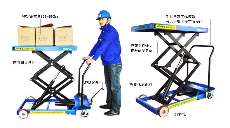 双剪叉设计,提升高度更高; 引进英国先进技术生产;